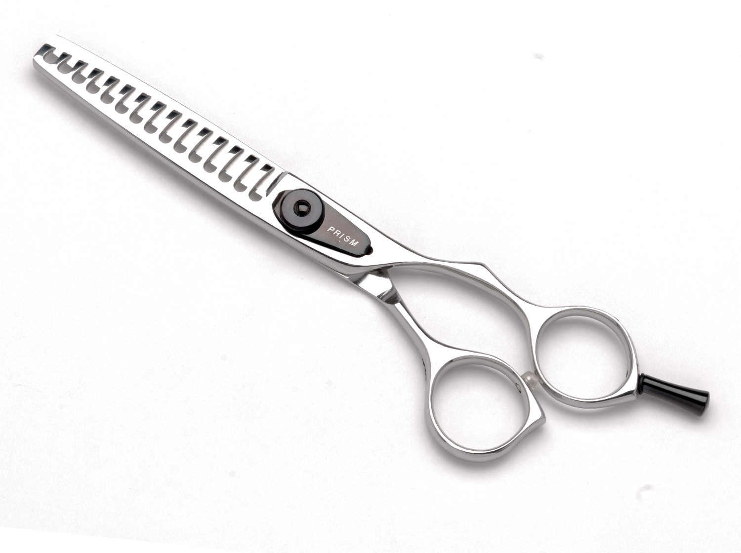 The Shisato Prism 4000 is a fine quality Japanese thinning scissor that is light weight and cuts out 40 percent of the hair.